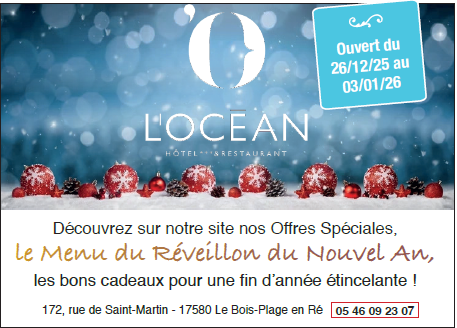 L’Océan vous accueille du 26 décembre au 3 janvier et propose des offres spéciales séjour & restauration pour une parenthèse chaleureuse et gourmande au coeur de l’hiver. Notre restaurant vous accueille midi et soir, dans une ambiance cosy avec la cheminée allumée, tandis que le bar lounge reste ouvert pour commencer votre dîner. Le 31 décembre, venez célébrer le réveillon autour d’un dîner raffiné spécialement imaginé pour l’occasion. Toute l’équipe vous attend pour partager la magie de cette fin d année à l’Océan.