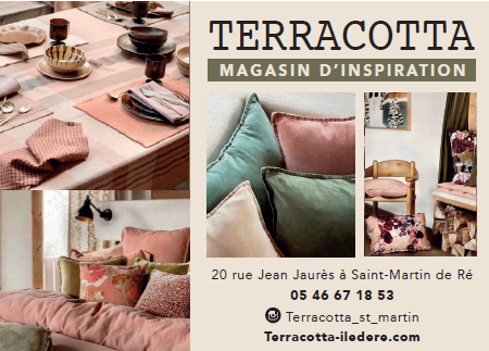 Au coeur de Saint-Martin-de-Ré, la boutique Terracotta vous ouvre les portes d’un univers entièrement dédié à la maison. Emmanuelle vous y accueille avec chaleur et expertise pour vous faire découvrir la nouvelle collection hiver, sublimée par la couleur tendance Mocaccino, un terracotta clair élégant et enveloppant. Entre décoration (coussins, sofa covers, plaids, tapis), rideaux et voilages avec possibilité de sur-mesure, linge de lit (parures complètes, couvre-lit, jetée, bout de lit, édredon), et linge de bain délicat (serviettes, tapis), vous trouverez tout pour créer une ambiance douce et raffinée chez vous. La boutique propose également un superbe choix de linge de table et d’office : nappes, tabliers, torchons, accessoires… tout pour embellir votre quotidien. Terracotta, c’est le rendez- vous incontournable pour transformer votre intérieur avec style, qualité et conseils personnalisés.