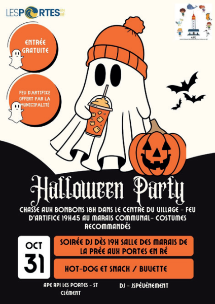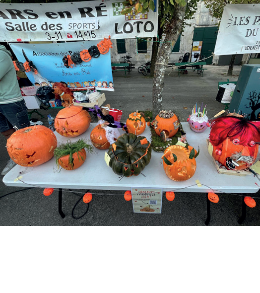 L’APE d’Ars-en-Ré organise, le vendredi 31 octobre, une chasse aux monstres de 15h à 18h, un concours de citrouille (la plus effrayante, la plus drôle et la plus originale) avec annonce des résultats du vote et remise des lots à 17h30. Le dépôt des citrouilles se fera entre 15h et 16h30. Une vente de gâteaux et boissons sera proposée tout au long de l’évènement.